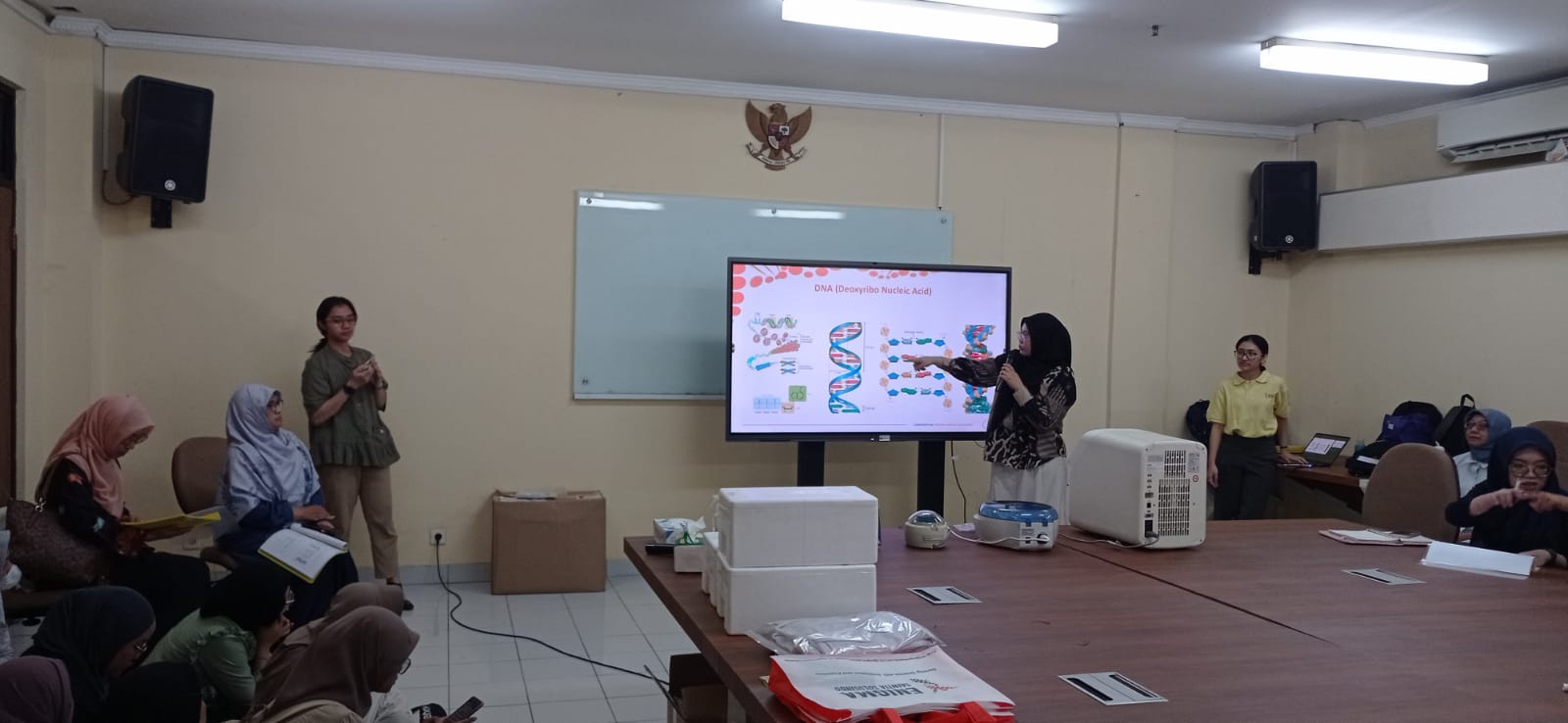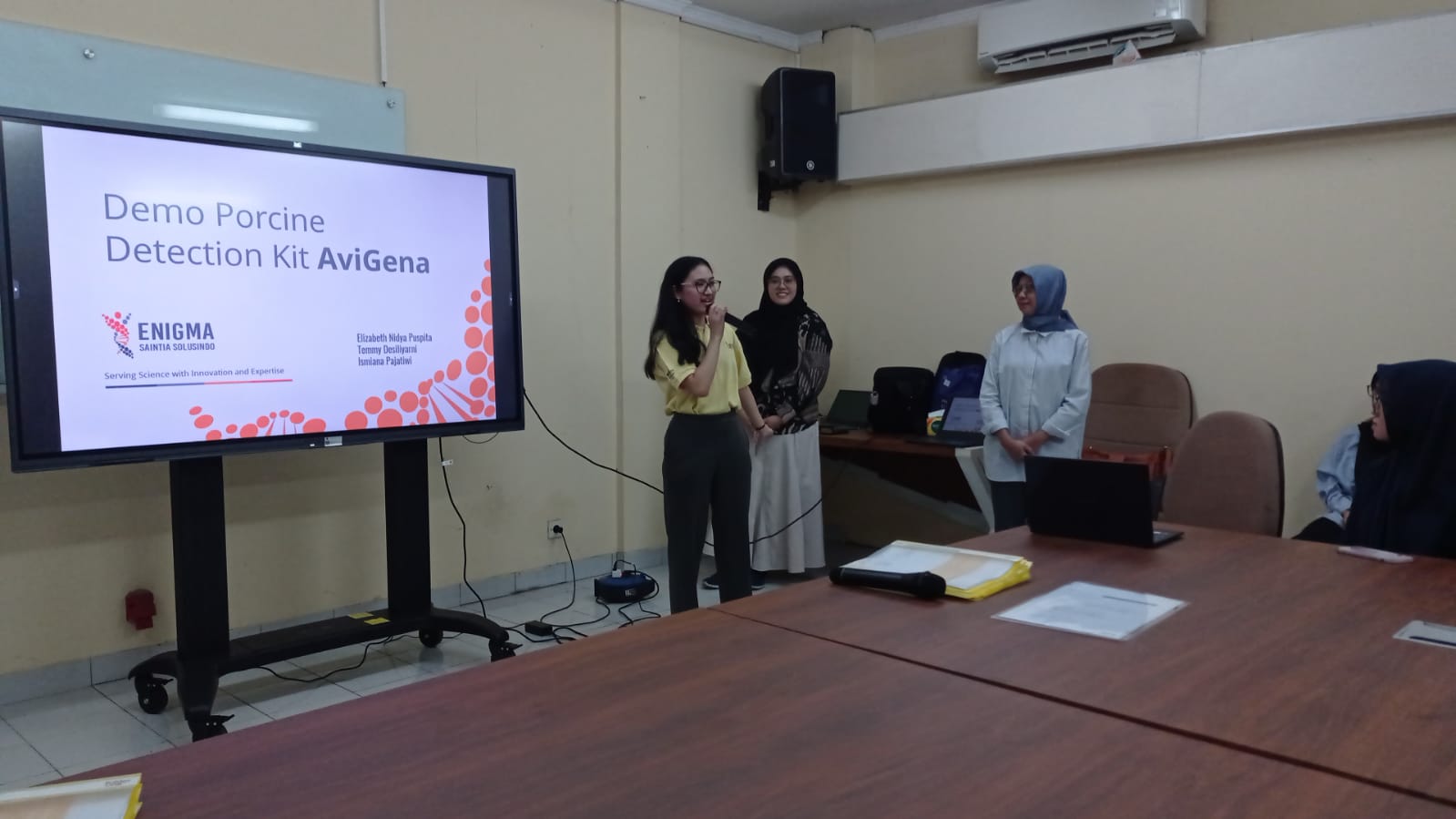 Dalam rangka mendukung terwujudnya ekosistem dan percepatan Indonesia halal. Avigena Porcine Detection Kit hadir untuk mendemonstrasikan alat peraganya di Gedung Pusat Laboratorium Terpadu Fakultas Sains dan Teknologi UIN Syarif Hidayatullah Jakarta (04/12/2024). Turut hadir Ibu Nunung Dwi Ningsih mewakili kepala PLT membuka sambutan penerimaan kegiatan Demo alat Porcine Detection Kit Avigena dari Tim PT. Enigma Saintia Solusindo, dan dari para Dosen Biologi, Kimia FST UIN Jakarta serta mahasiswa/i nya hadir untuk mengetahui informasi tentang Manfaat dari Alat AviGena Porcine Detection Kit mampu mendeteksi babi pada bahan makanan mentah dan makanan olahan secara akurat dan tepat menggunakan metode Real-Time PCR yang diproduksi di Indonesia dan telah divalidasi bersama LPPOM MUI.