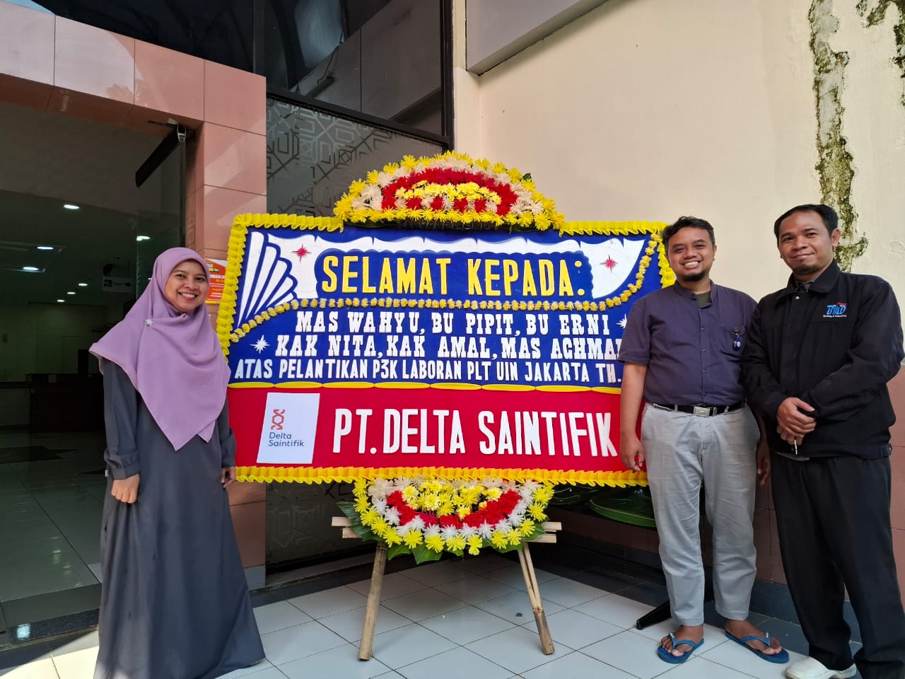Dengan telah dilantiknya teman-teman PLT menjadi PPPK, Alhamdulillah mendapat apresiasi ucapan apresiasi dengan kiriman bunga dari perusahaan PT. Delta Saintifik dengan mengirimkan karangan bunga kepada Teman-teman Laboran yang diangkat sebagai pegawai baru PPPK adalah tindakan yang sangat positif dan profesional. Ini menunjukkan bahwa perusahaan menghargai dan menyambut kehadiran pegawai baru, serta menciptakan suasana kerja yang menyenangkan dan positif. So..Semangat bekerja teman-teman sudah di support loh...Terima PT. Delta Saintek..
