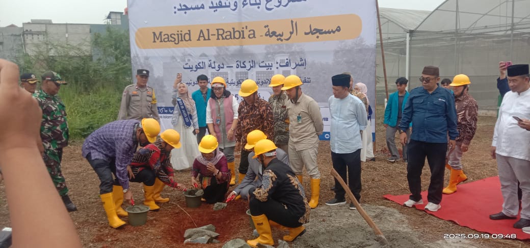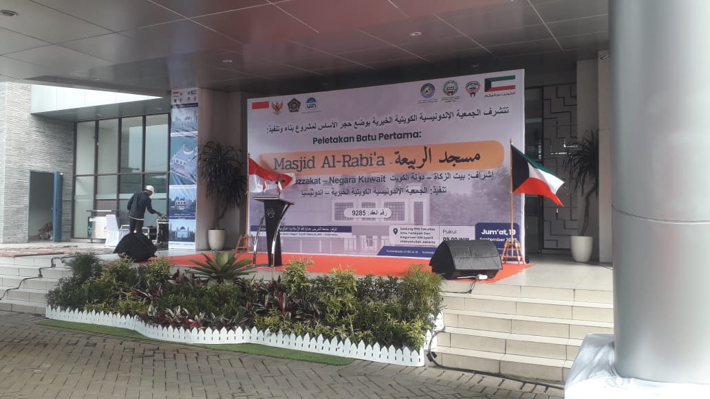 UIN Syarif Hidayatullah Jakarta bersama Baituzzakat – Negara Kuwait dengan pelaksana Jam’iyyah Khairiyah Indonesia Kuwait, menggelar peletakan batu pertama pembangunan Masjid Al-Rabi’a.