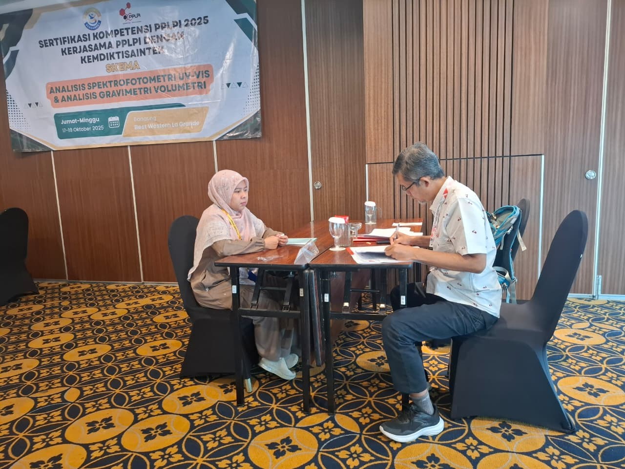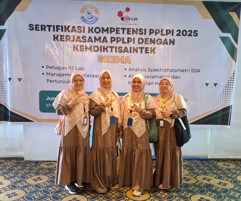 Bandung, 19 Oktober 2025 — Empat Pranata Laboratorium Pendidikan (PLP) dari Pusat Laboratorium Terpadu (PLT) Fakultas Sains dan Teknologi (FST) UIN Syarif Hidayatullah Jakarta mengikuti kegiatan Pelatihan dan Sertifikasi Kompetensi PLP yang diselenggarakan oleh Persatuan Pranata Laboratorium Pendidikan Indonesia (PPLPI) bekerja sama dengan Kementerian Riset, Teknologi, dan Sains (Kemenristeksains).